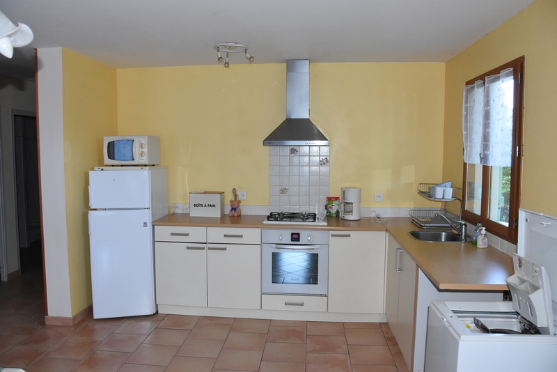 Une cuisine équipé (micro-ondes,cuisinière avec plaque vitro céramique, frigo avec congélateur)